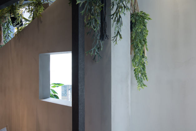 コンクリートを基調とした無機質な内装を色づけるように、植物を取り入れる提案をしました。打ち合わせをしているときも、ふと目にして癒される場所にしたいと考えました。
